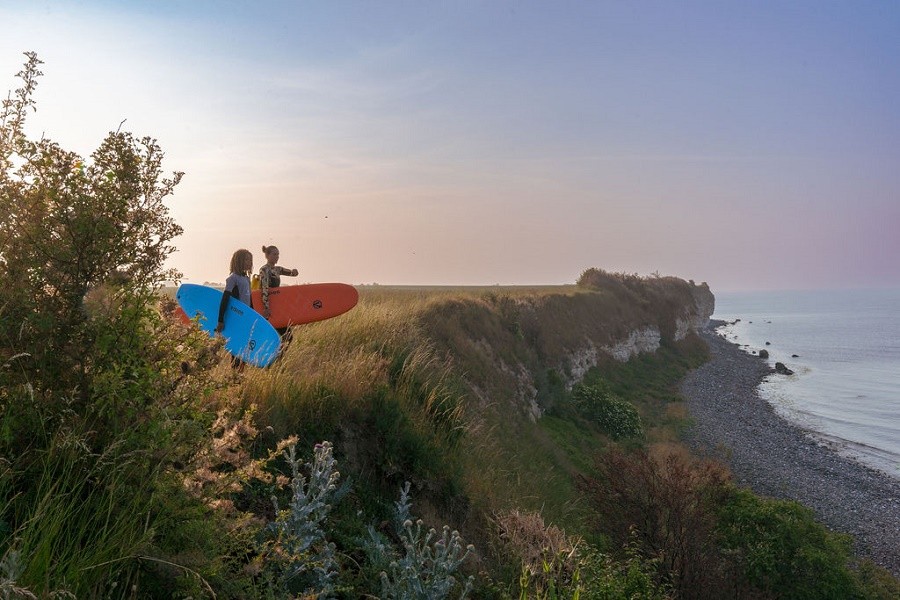 In de omgeving van Familyhouse Rødvig is veel te doen! Inbegrepen in je verblijf is het gebruik van watersportspullen: wetsuits, surfboards, sups, kajaks en kano’s liggen voor jullie klaar. Vanuit de tuin kun je de trap af naar het (kiezel)strand waar je zo het water op stapt om naar het dorp te paddelen of vanaf het water de prachtige krijtrotsen te bewonderen. In het dorp zelf is een fijn zandstrand waar je ook lekker kunt liggen en zwemmen.