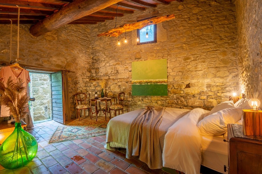 Wat ooit oude Toscaanse boerderijen waren, is nu een gerenoveerd dorpje met 18 knusse hotelkamers (vernoemd naar Italiaanse planten, dieren en bloemen). Daarnaast zijn er 2 luxe villa's en zelfs een treehouse beschikbaar! Het hoofdgebouw: La Fattoria, beschikt over een lounge en een grote eetkamer met een haard. Ook is er een terras, een klein buiten theater en een infinity pool met cocktailbar. Elke kamer is uniek, heeft een fantastisch uitzicht op de vallei of het bos en is voorzien van een eigen badkamer met een douche en een toilet.